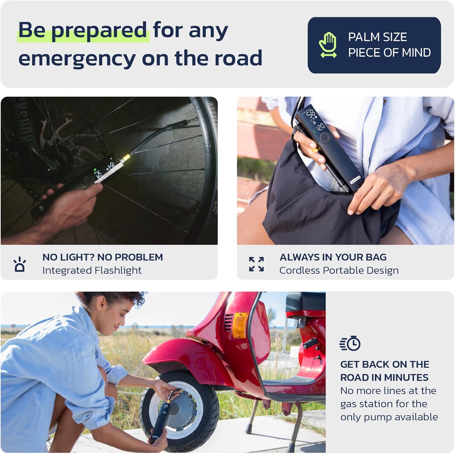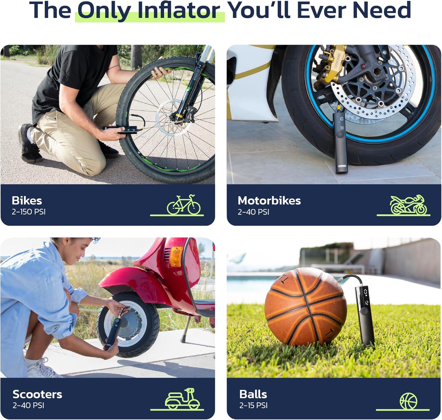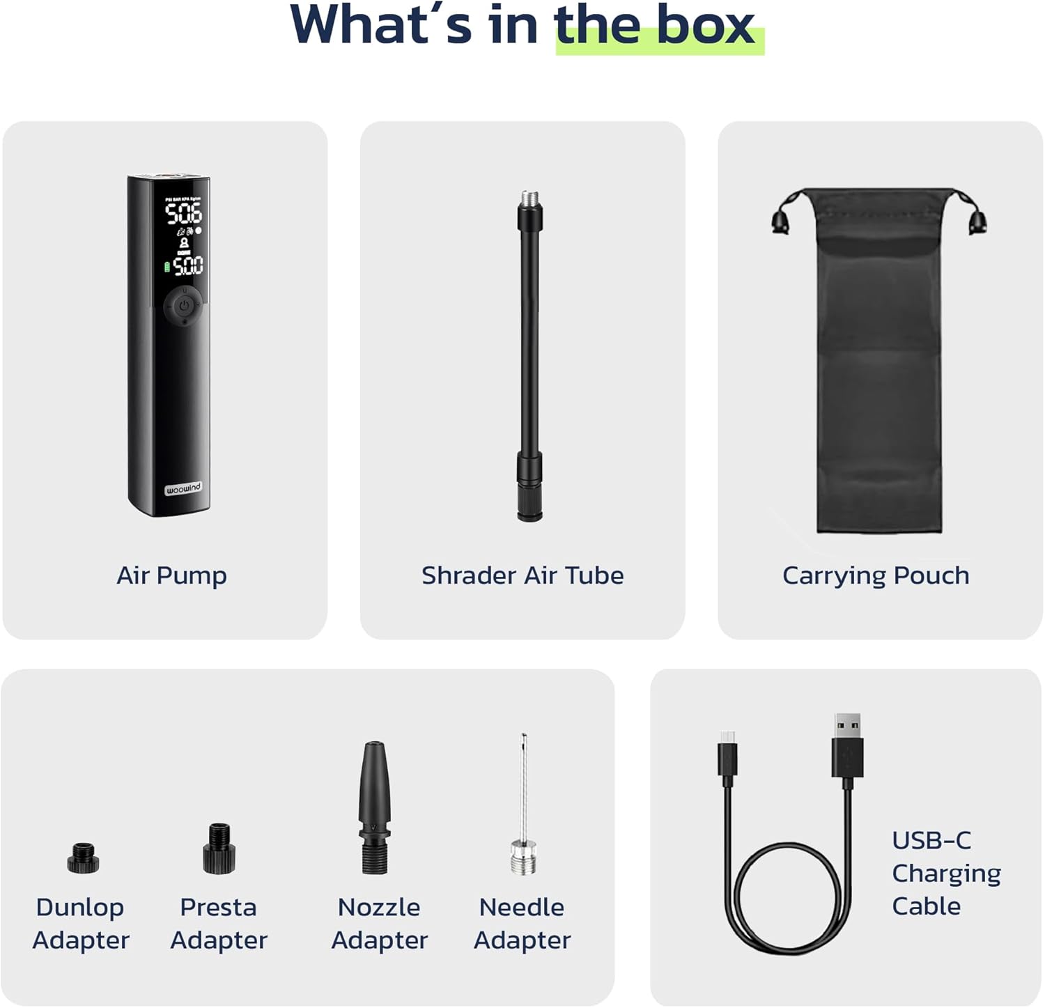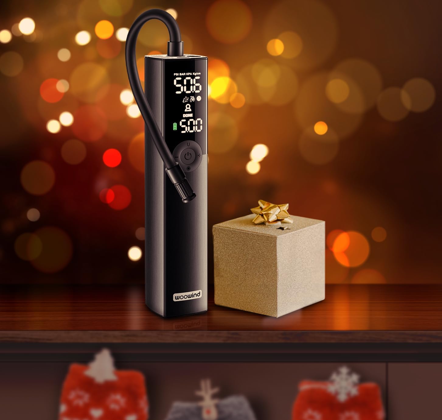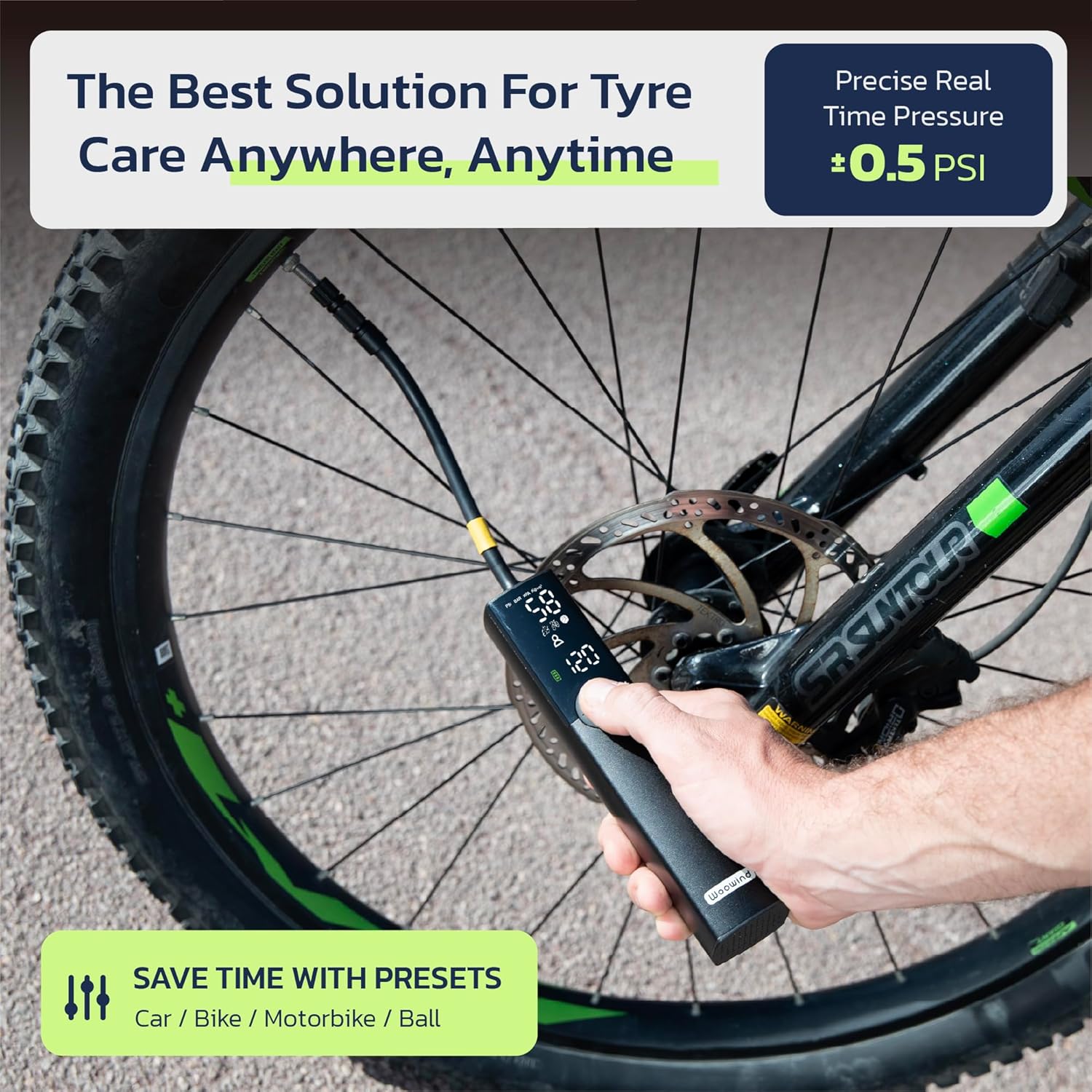 Woowind BP188 Electric Bike Pump Presta Valve And Schrader, Air Pump Tyre Inflator For Bikes, Motorcycle, Auto Shut-off 120~150PSI and Rechargeable